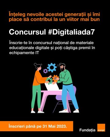Până pe 31 mai, cei care doresc să intre în concursul Digitaliada 7.0 sunt așteptați să își înscrie materialele pe www.digitaliada.ro. Profesorii și elevii câștigători vor fi premiați cu echipamente electronice și IT în valoare totală de 10.000 euro, iar proiectele câștigătoare se vor regăsi pe digitaliada.ro.