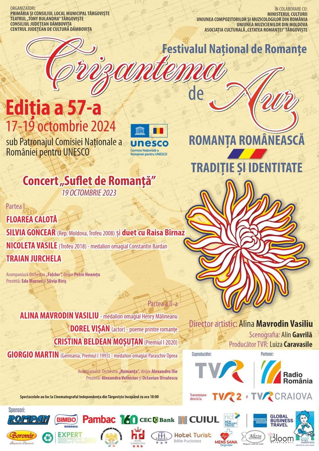 Cu doar o zi înainte de deschiderea unuia dintre cele mai îndrăgite evenimente culturale din România, Festivalul Național de Interpretare și Creație a Romanței „Crizantema de Aur” promite o ediție de excepție. Între 17 și 19 octombrie, orașul Târgoviște va deveni centrul muzicii și tradițiilor românești, reunind artiști talentați și iubitori ai romanței.