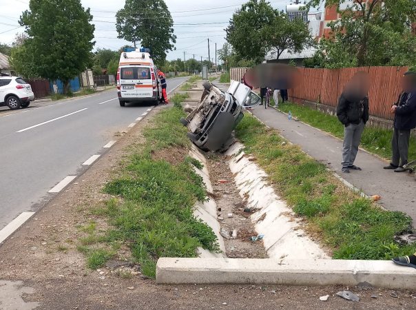 Din primele verificări efectuate, polițiștii au constatat că un bărbat, de 41 de ani, în timp ce conducea un autoturism ar fi părăsit partea carosabilă și s-ar fi răsturnat într-un șanț.