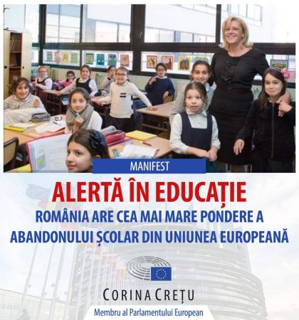 Pentru că există în prezent o nouă Lege a Educației în dezvoltare, consider că aceasta trebuie să țină cont de toate aceste realități alarmante, iar măsurile care se vor lua în continuare pentru redresarea sistemului de învățământ trebuie în mod obligatoriu gândite astfel încât să existe obiective clare de reducere a abandonului, de corelare a curriculei școlare cu cerințele pieței muncii și deopotrivă așteptările elevilor – mai puțină informație brută și mai mult accent pus pe dezvoltarea concretă a aptitudinilor. ” , a afirmat eurodeputatul Corina Crețu