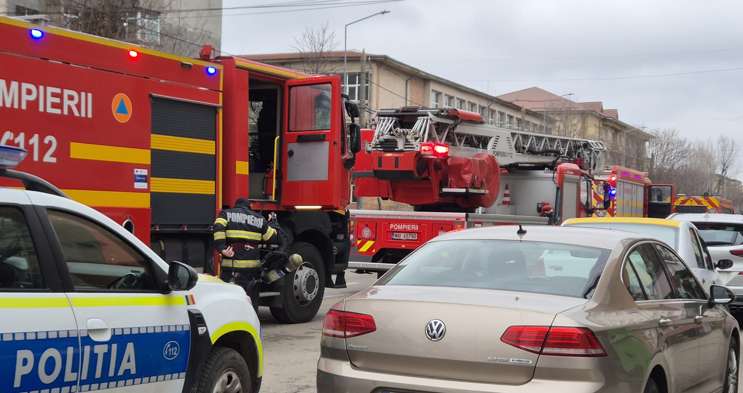 Incendiul a fost localizat și lichidat, iar echipajele au asigurat măsurile de siguranță pentru întreaga clădire.