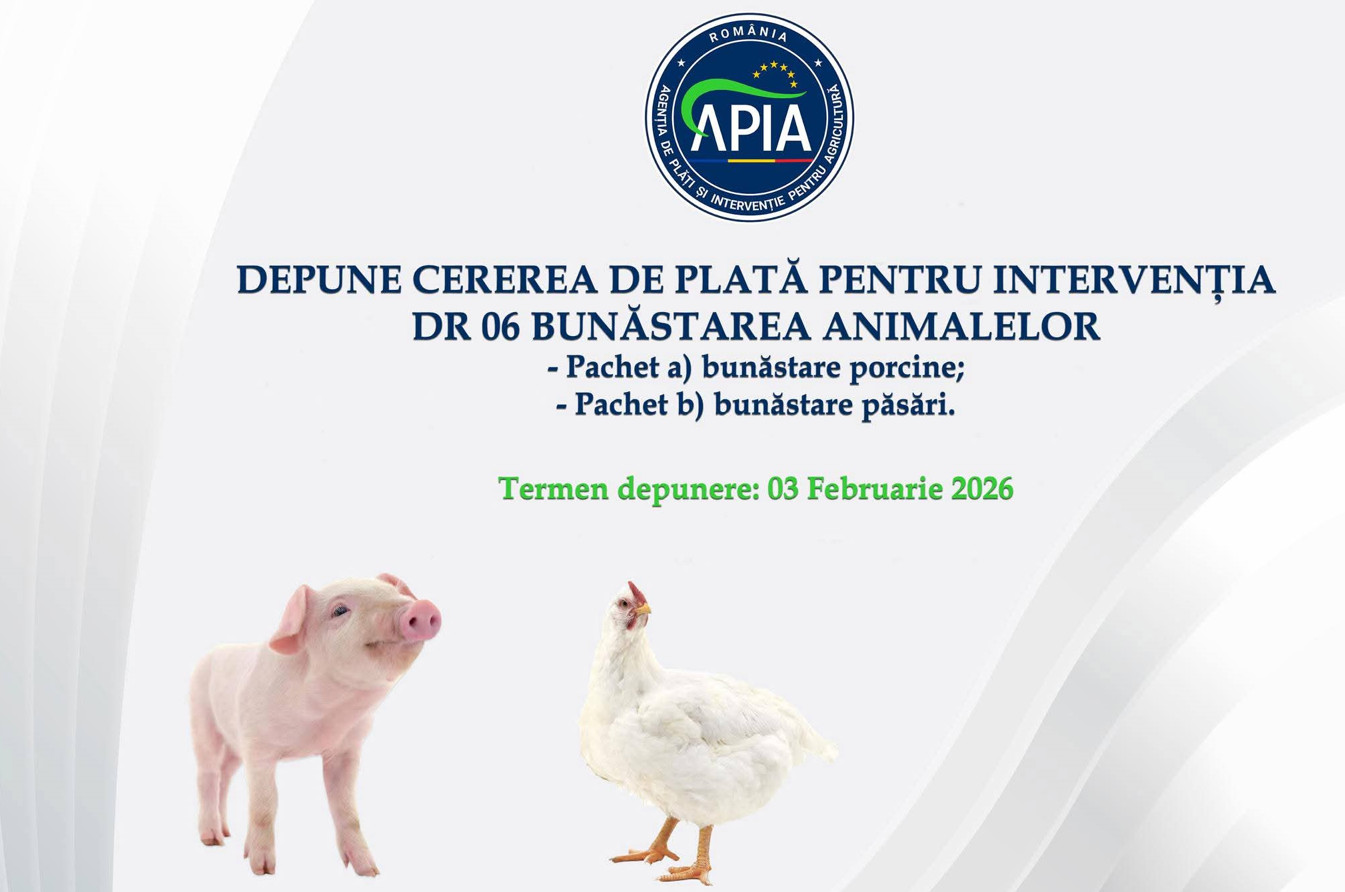 Agenția de Plăți și Intervenție pentru Agricultură (APIA) vine cu vești bune pentru crescătorii de animale. Până la data de 3 februarie 2026, fermierii pot depune cereri de plată pentru Intervenția DR-06 – Bunăstarea animalelor, din cadrul Planului Strategic PAC 2023–2027.