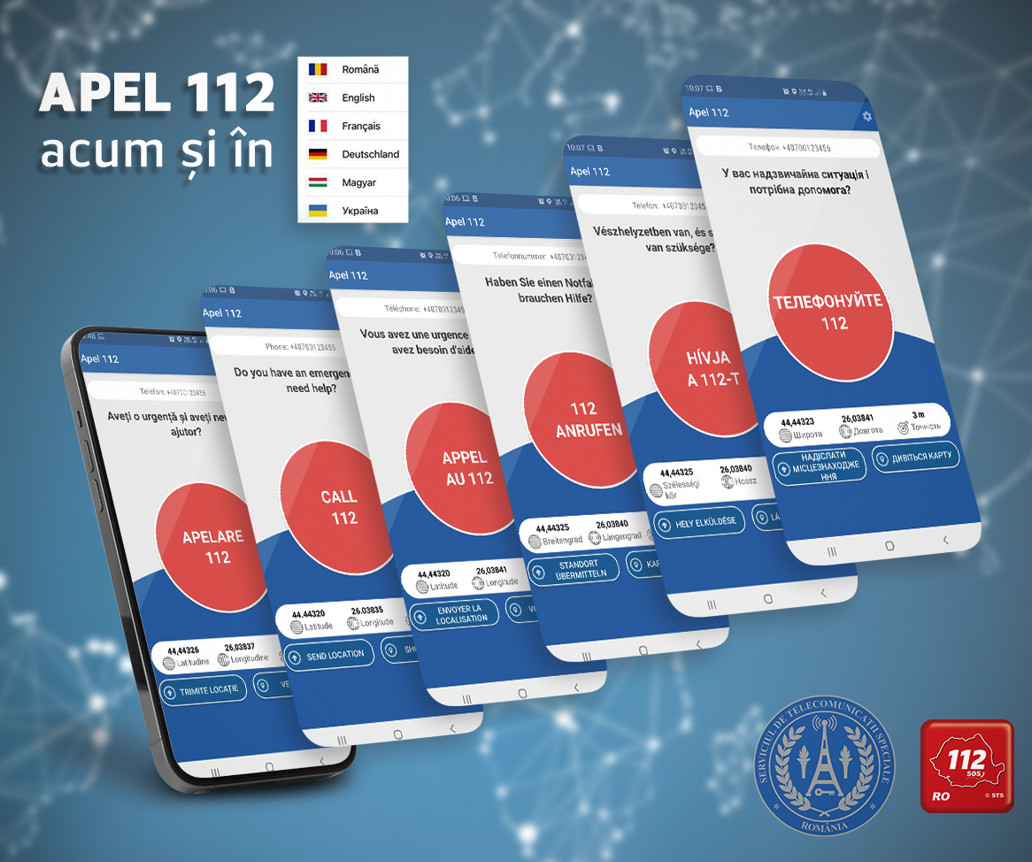 Aplicația APEL 112, disponibilă în mai multe limbi, Serviciul de Telecomunicații Speciale (STS) a adăugat noi traduceri în aplicația Apel 112 iar, în prezent, poate fi folosită atât în limba română, cât și în limbile engleză, franceză, germană, maghiară și ucraineană.