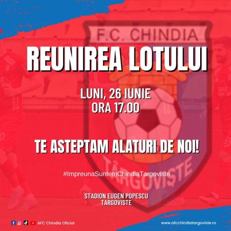 Luni, 26 iunie, ora 17:00, la stadion "Eugen Popescu",  se reunește lotul Chindiei Târgoviște care va evolua în Liga 2
