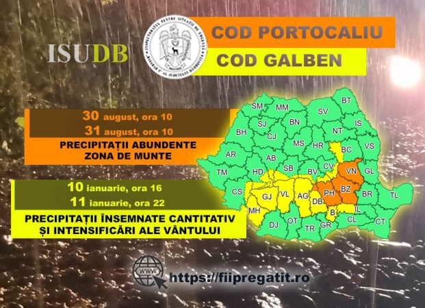 Autoritățile din Dâmbovița au fost alertate , trebuie să fie pregătite să intervină date fiind CODURILE GALBEN și PORTOCALIU de ploi, ninsori și vânt, ISU Dâmbovița a luat măsura înştiințării tuturor comitetelor locale pentru situaţii de urgenţă, dar şi a instituţiilor cu atribuţii în gestionarea fenomenelor meteorologice prognozate, pompierii dâmbovițeni fiind pregătiți să intervină în sprijinul comunităţilor.