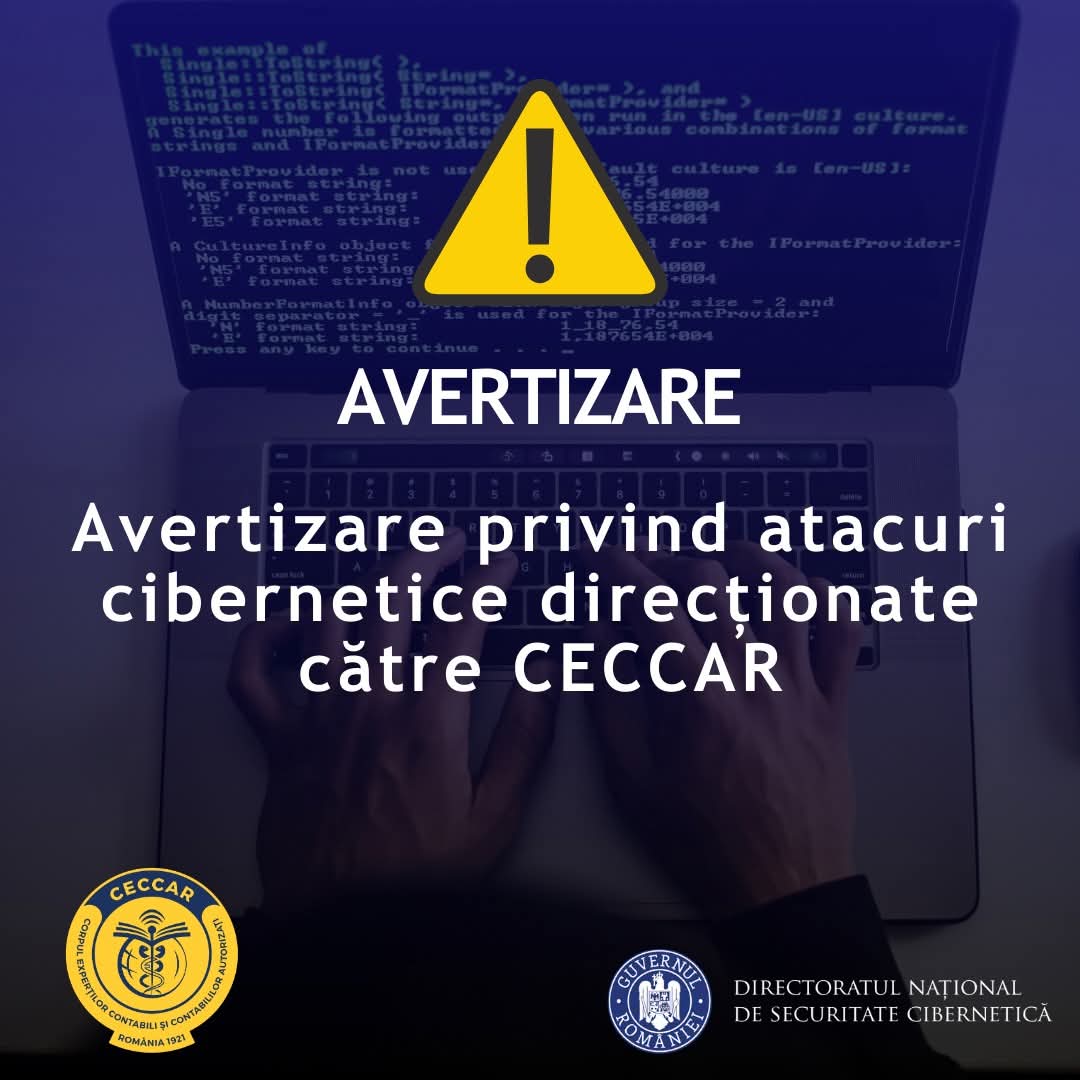Directoratul Național de Securitate Cibernetică (DNSC) avertizează asupra unor atacuri țintite împotriva Corpului Experților Contabili și Contabililor Autorizați din România (CECCAR). Scopul atacatorilor este afectarea imaginii organizației și compromiterea celui mai important eveniment al profesiei contabile – Congresul CECCAR.