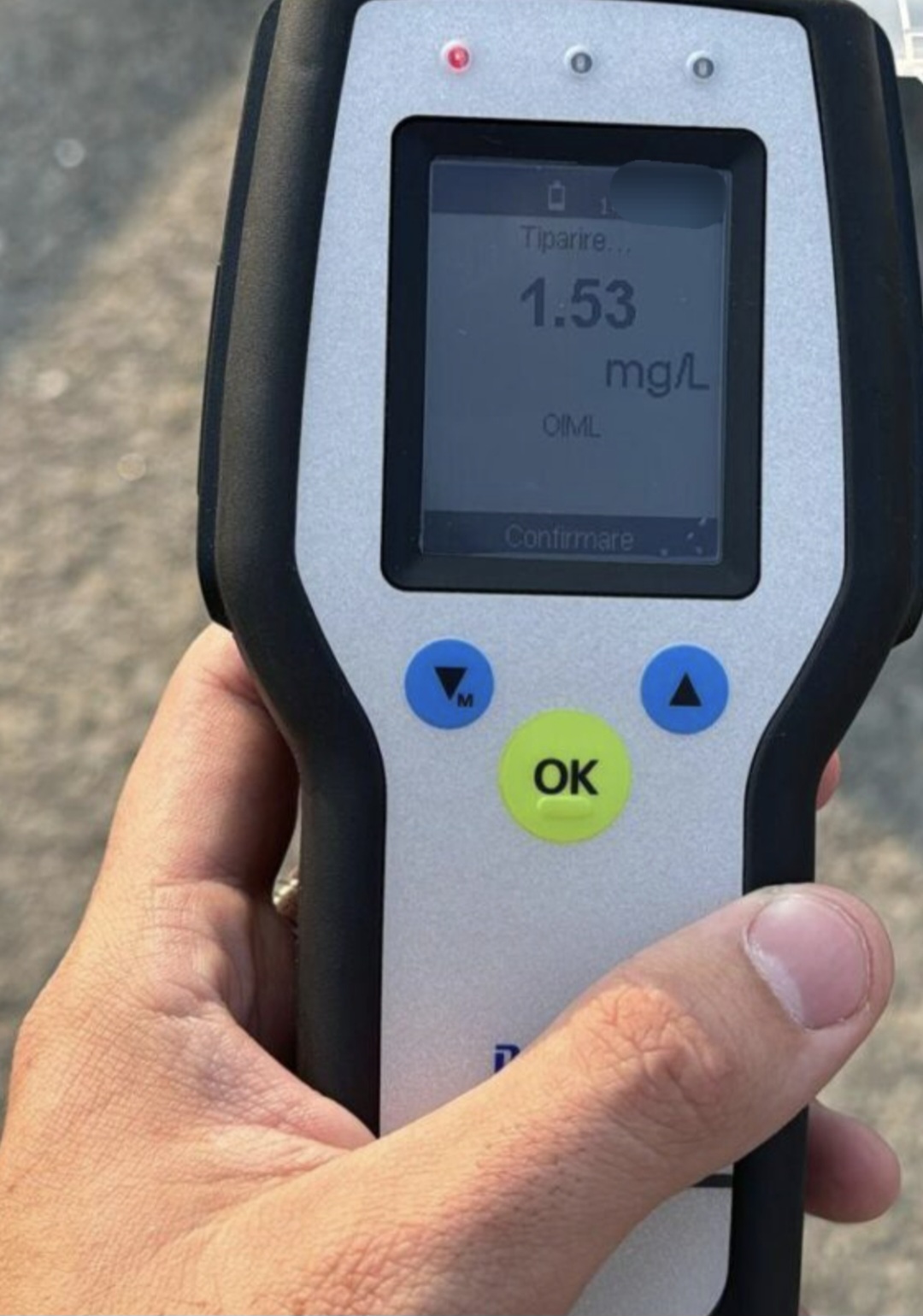 Fiind suspect de consum de alcool, șoferul a fost testat cu aparatul alcooltest, rezultatul indicând o concentrație de 1,53 mg/l alcool pur în aerul expirat.