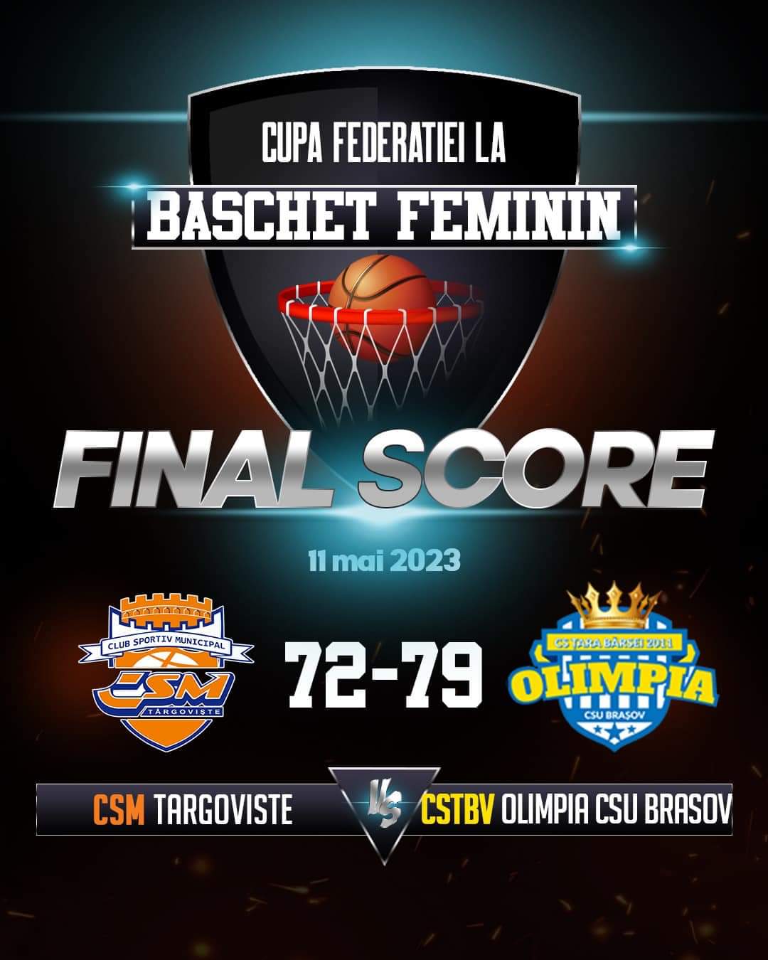 Scorul final dintre CSM Târgoviște- CSTBv Olimpia CSU Brașov: 72-79 (17-14; 18-15; 17-26; 20-24).
