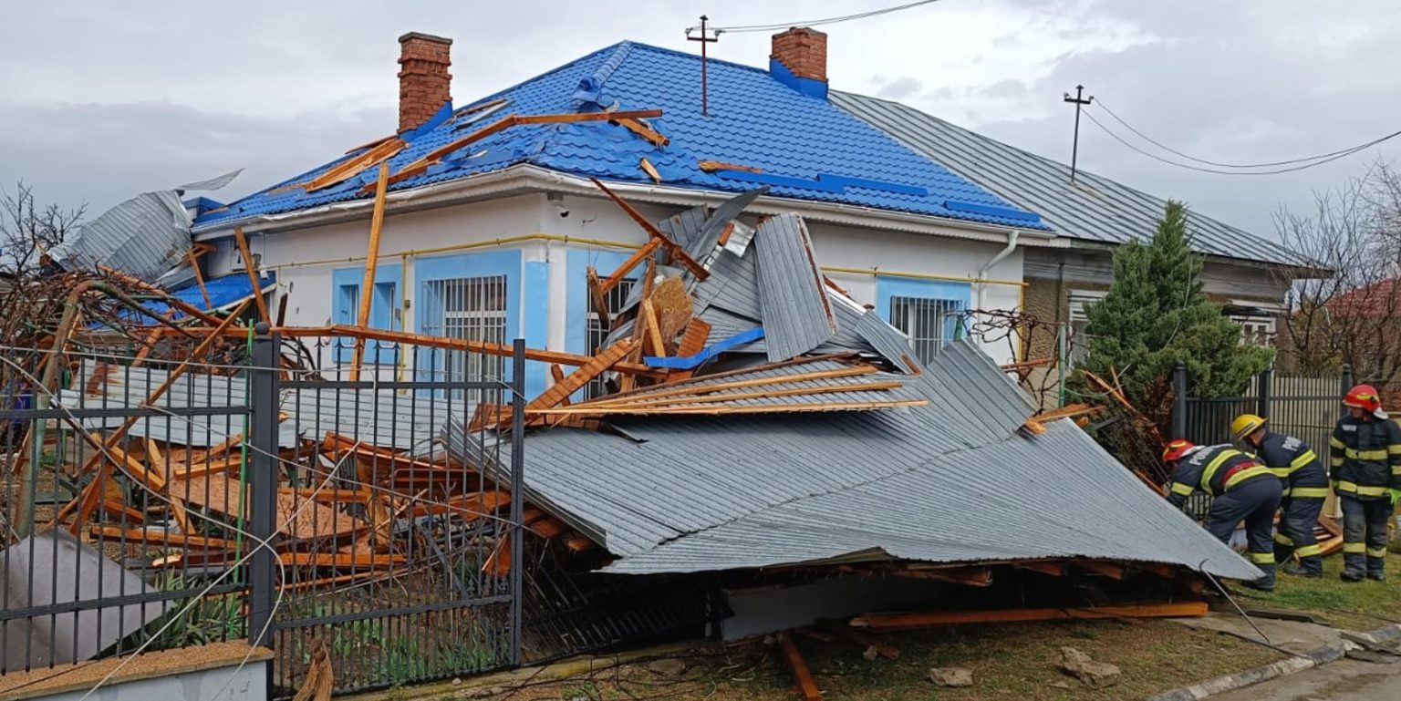 O situație mai deosebita s-a înregistrat în comuna IL Caragiale, sat Mija unde vântul a desprins acoperișul unui bloc. Pompierii au acționat pentru degajarea elementelor de acoperiș luate de vânt care au căzut pe garajele din apropiere și o casă.