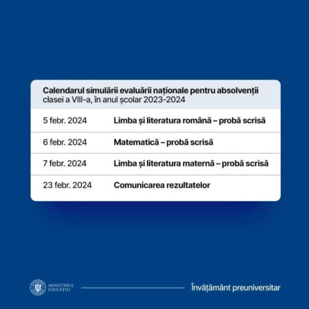 A fost aprobat și trimis spre publicare ordinul privind organizarea simulării evaluării naționale pentru absolvenții clasei a VIII-a și a simulării probelor scrise ale examenului național de bacalaureat, în anul școlar 2023-2024!