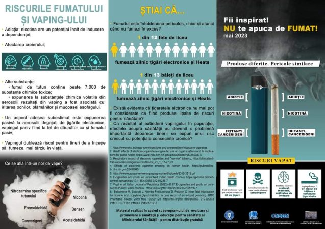În acest context, în luna mai a anului 2023 se derulează, la nivel național, campania privind prevenția consumului de tutun, care are ca temă „Prevenirea consumului de țigări și a utilizării de dispozitive electronice (HEETS și ENDS) în rândul adolescenților”.