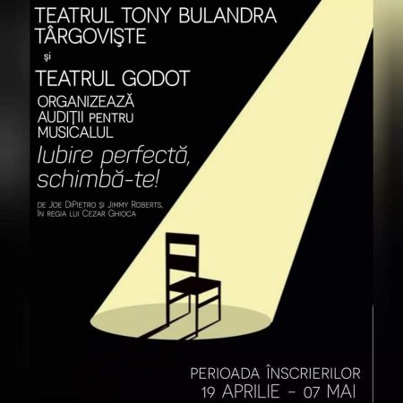 Teatrul Tony Bulandra Târgovişte având ca partener Teatrul Godot, anunță audiții pentru 𝗠𝘂𝘀𝗶𝗰𝗮𝗹𝘂𝗹 – Iubire perfectă, schimbă-te(𝙄 𝙇𝙤𝙫𝙚 𝙔𝙤𝙪, 𝙔𝙤𝙪’𝙧𝙚 𝙋𝙚𝙧𝙛𝙚𝙘𝙩, 𝙉𝙤𝙬 𝘾𝙝𝙖𝙣𝙜𝙚!) de Joe DiPietro și Jimmy Roberts, în 𝗿𝗲𝗴𝗶𝗮 𝗹𝘂𝗶 𝗖𝗲𝘇𝗮𝗿 𝗚𝗵𝗶𝗼𝗰𝗮.