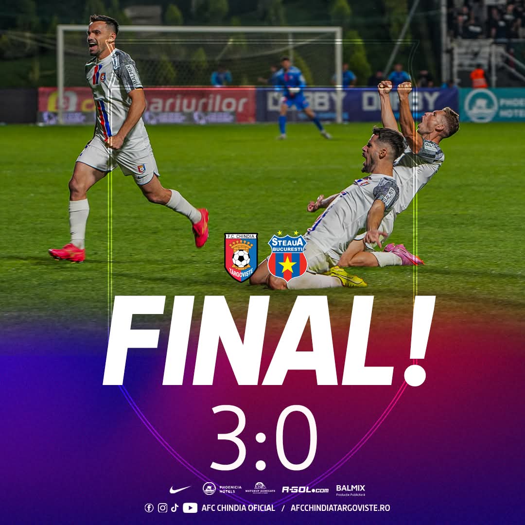 Chindia Târgoviște a obținut o victorie clară în fața Stelei, câștigând cu scorul de 3-0, într-un meci disputat pe teren propriu. Golurile echipei târgoviștene au fost marcate de Albu (’27), Plaza (’36) și Florea (’51), fiecare contribuind decisiv la succesul formației locale.