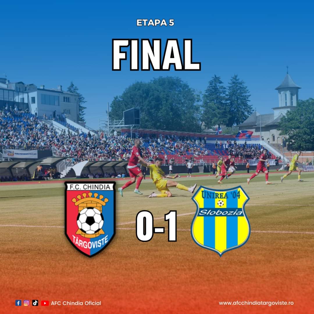 Chindia Târgoviște a pierdut partida cu Unirea Slobozia, scor final, 0-1 .