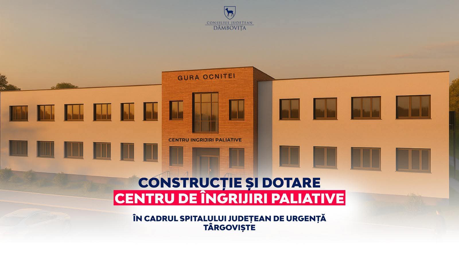 Consiliul Județean Dâmbovița anunță semnarea contractului pentru proiectarea și execuția Centrului de Îngrijiri Paliative Gura Ocniței, o investiție importantă pentru sistemul medical dâmbovițean, în valoare de peste 19,67 milioane de lei. Proiectul are o durată totală de 21 de luni, dintre care 3 luni sunt dedicate proiectării, iar 18 luni realizării lucrărilor.