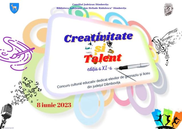 Concursul ,,Creativitate și talent”, ediţia a XI-a (septembrie 2022 – iunie 2023), se adresează elevilor de clasele I-XII şi cuprinde următoarele secțiuni: creație literară; interpretare vocală și instrumentală; recitare; grafică.