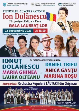 Consiliul Judeţean Dâmboviţa, prin Centrul Judeţean de Cultură Dâmboviţa, alături de Fundaţia Culturală Ion Dolănescu, vă invită în zilele de 21 și 22 septembrie 2023 la un eveniment cultural de marcă, un regal al cântecului popular românesc: Festivalul – Concurs Naţional „Ion Dolănescu”, ediția a IX-a.