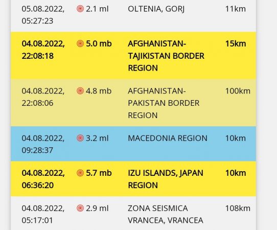 Cutremur, vineri, 5 august, în Oltenia- Gorj la ora 05:27:23 , cu magnitudinea ml 2.1, la adâncimea de 11km.