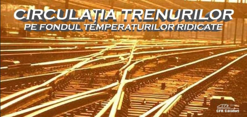 DIN CAUZA CANICULEI, TRENURILE AU ÎNTÂRZIERI, CFR Călători informează că urmare a fenomenelor meteo extreme de caniculă și disconfort termic accentuat, care se înregistrează pe anumite secții feroviare, managerul infrastructurii – CFR SA, aplică restricții de viteză, ceea ce generează întârzieri în circulația trenurilor.