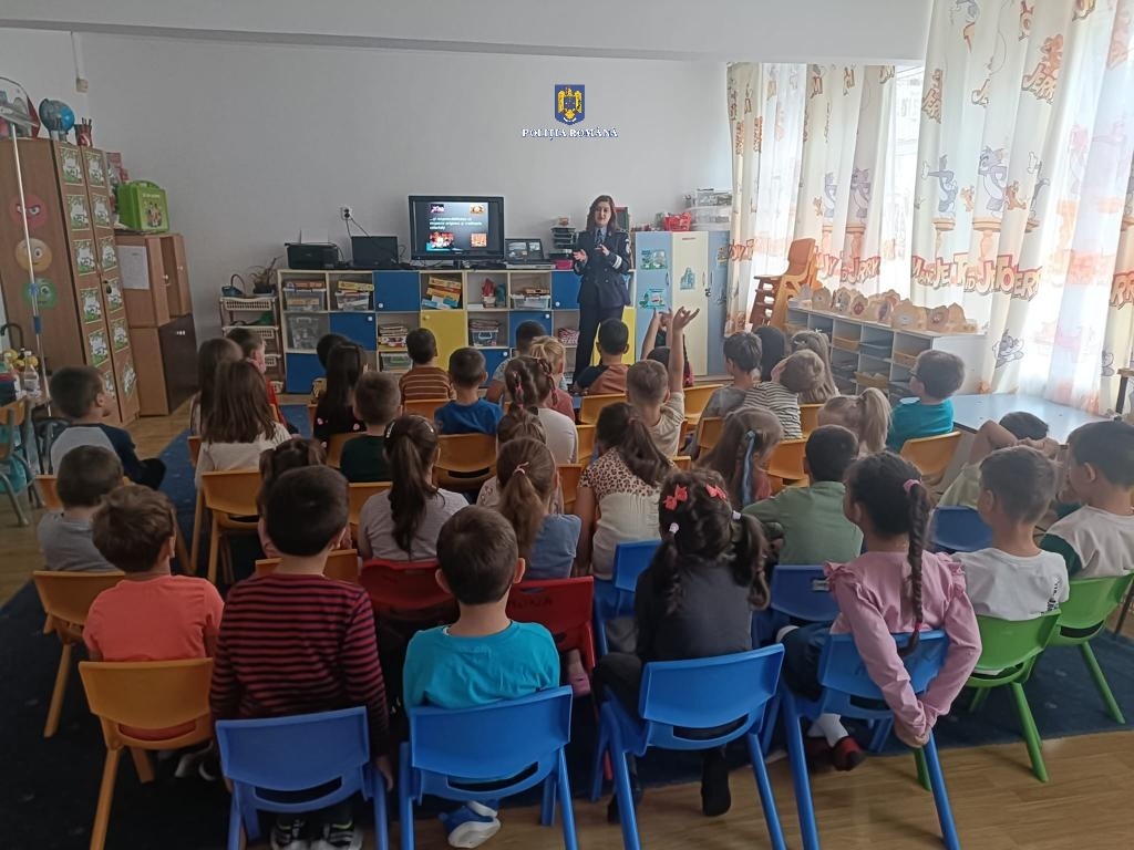 Astfel, preșcolarii de la Grădinița nr. 14 din Târgoviște au discutat cu polițiștii despre drepturile și obligațiile pe care le au, despre bullying, pericolele din mediul online, gestionarea conflictelor, modul de acțiune în cazul în care se rătăcesc, evitarea persoanelor necunoscute și a anturajelor nepotrivite.