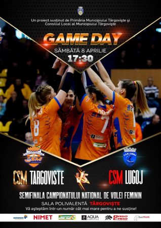 Sâmbătă, 8 Aprilie, ora 17:30, echipa de volei a Clubului Sportiv Municipal Târgoviște se va confrunta în sala Polivalentă cu CSM Lugoj în Semifinala Campionatului Național de Volei Feminin!