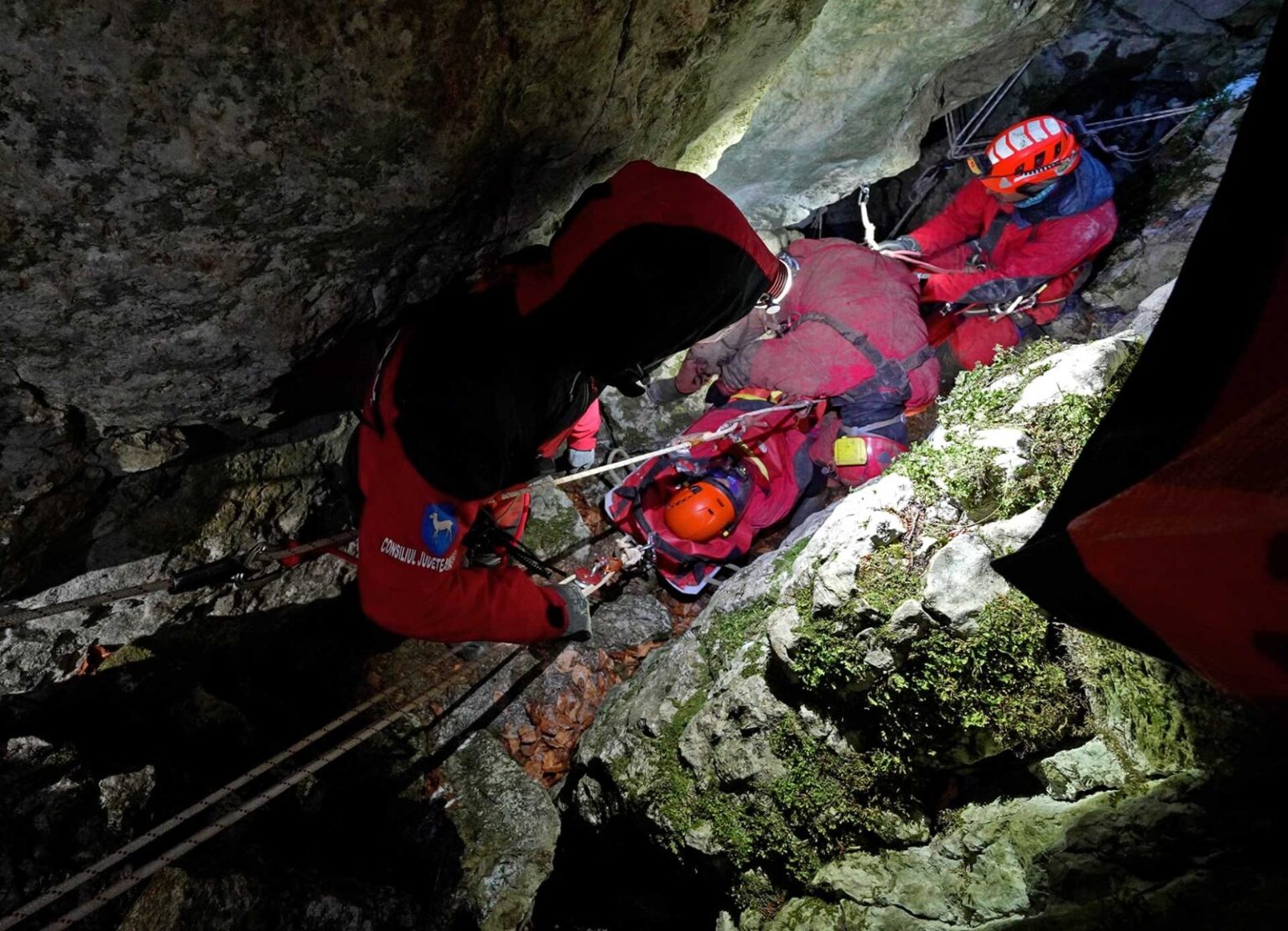 Fiecare echipă a avut sarcina de a pregăti un atelier specific, astfel încât targa să poată parcurge un traseu lin până la suprafață. Procesul a inclus diverse etape, iar la finalul acestora, a urmat operațiunea de extragere a victimei. Cu o coordonare exemplară și efort colectiv, targa a fost extrasă cu succes într-un timp impresionant de doar 35 de minute, de la baza avenului până la ieșirea acestuia.