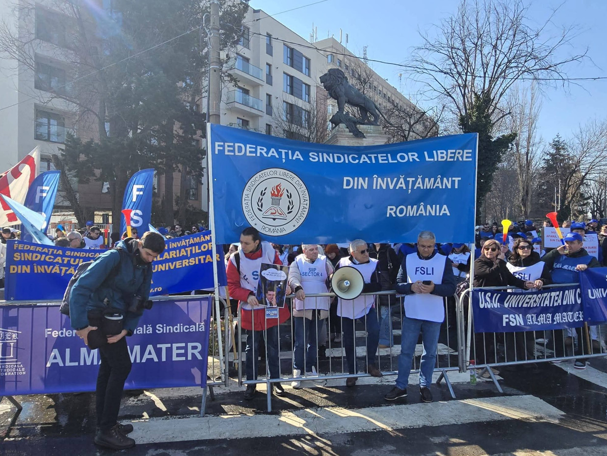 Ieri, 25 februarie 2026, în fața Palatul Cotroceni, cele trei federații sindicale reprezentative din învățământ au organizat un protest amplu față de măsurile de austeritate care, potrivit acestora, afectează grav sistemul educațional românesc.