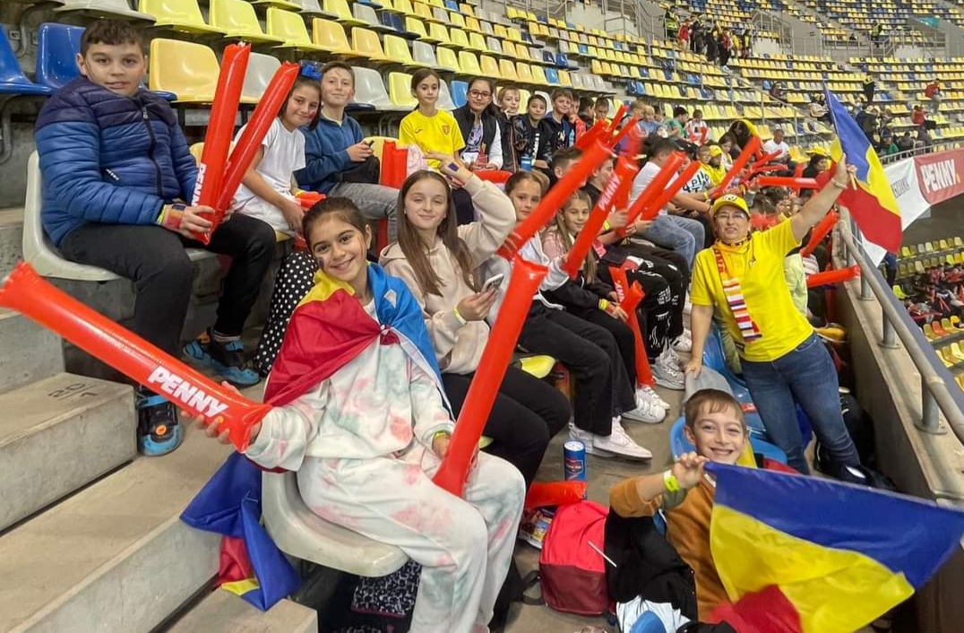 Elevi de la școlile din Răzvad au fost adevărați suporteri la partida România – Andorra, 4-0.