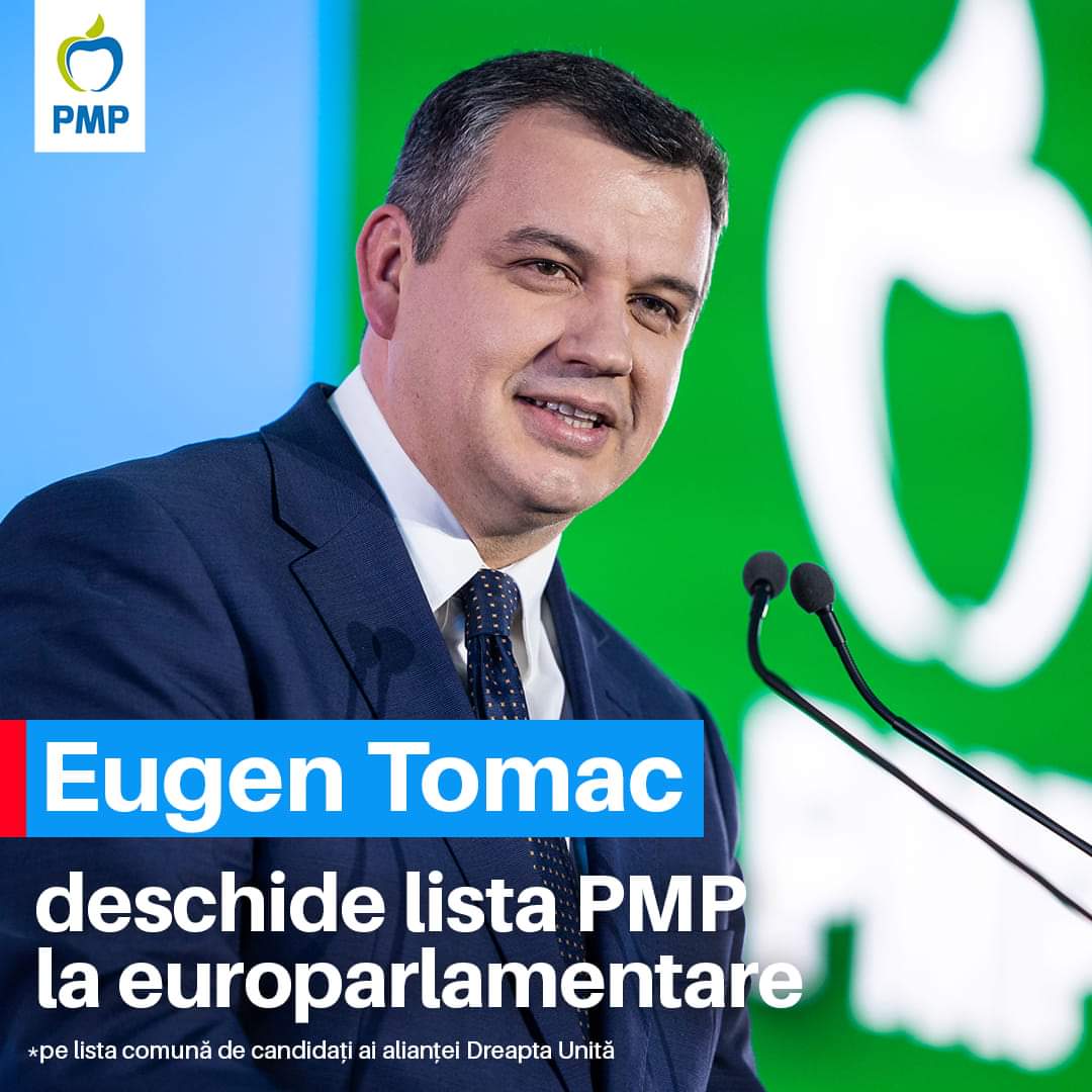 ” Suntem mândri că Eugen Tomac deschide lista PMP la primele alegeri din acest an și suntem convinși că ne va reprezenta cu cinste și în următorul mandat în Parlamentul European.”, a transmis PMP