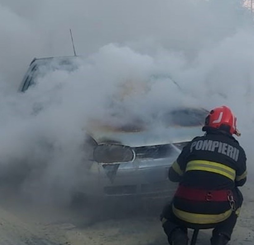 Flăcările au mistuit un autoturism pe o stradă din Corbii Mari