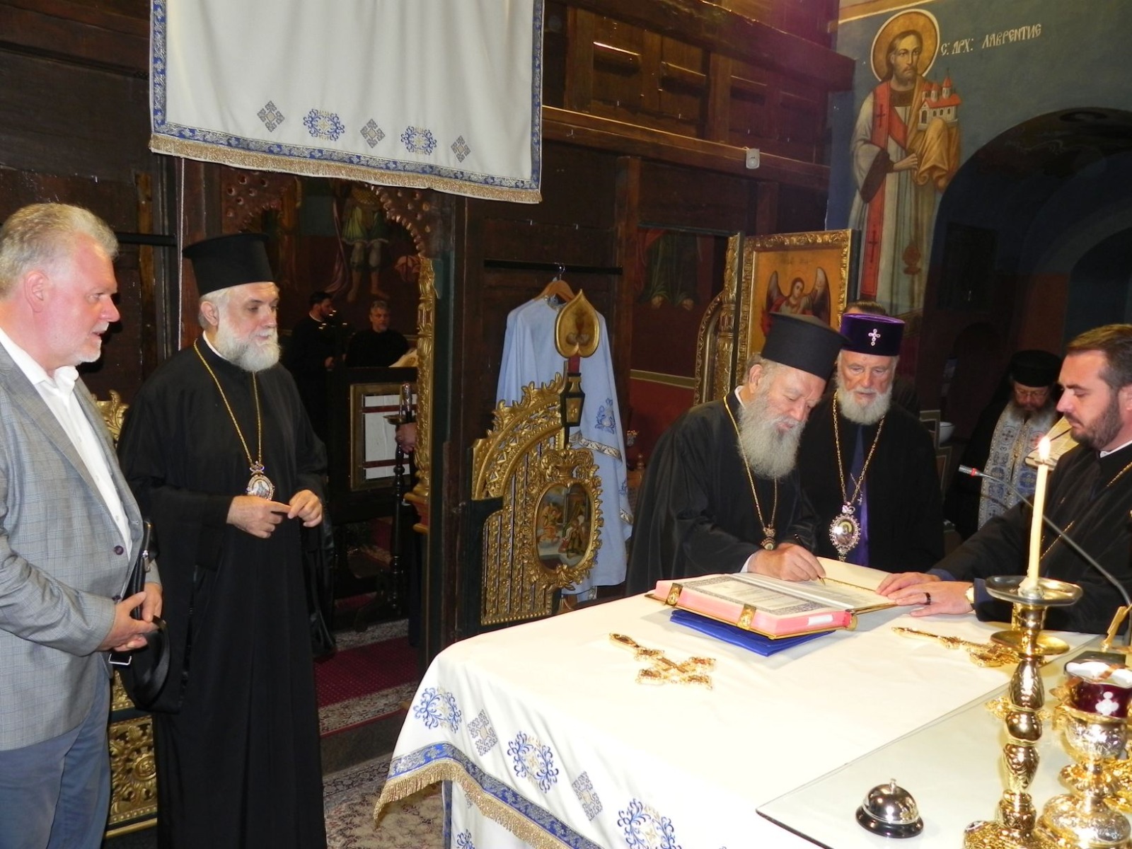 În cadrul sărbătorii Sfântului Ierarh Nifon, Patriarhul Constantinopolului și Mitropolitul Țării Românești, Arhiepiscopia Târgoviștei a primit vizita Înaltpreasfințitului Părinte Hrisostom, Mitropolitul Chalkidei, și a Preasfințitului Părinte Nicodim, Episcop de Scopelo, ierarhi ai Bisericii Greciei, însoțiți de Înaltpreasfințitul Părinte Arhiepiscop și Mitropolit Nifon.