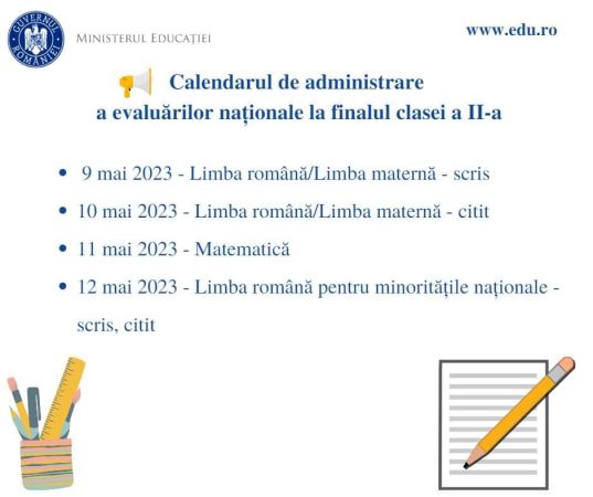Home»Social» Încep, astazi, evaluările naționale la finalul claselor a II-a, a IV-a și a VI-a în anul școlar 2022-2023