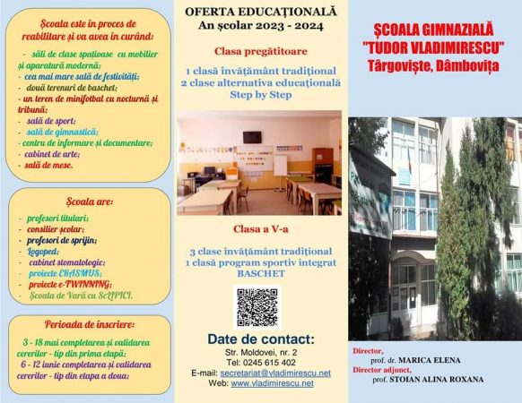Înscrierea la clasa pregătitoare 2023 – 2024 se face în baza metodologiei specifice, aprobată de Ministerul Educației.