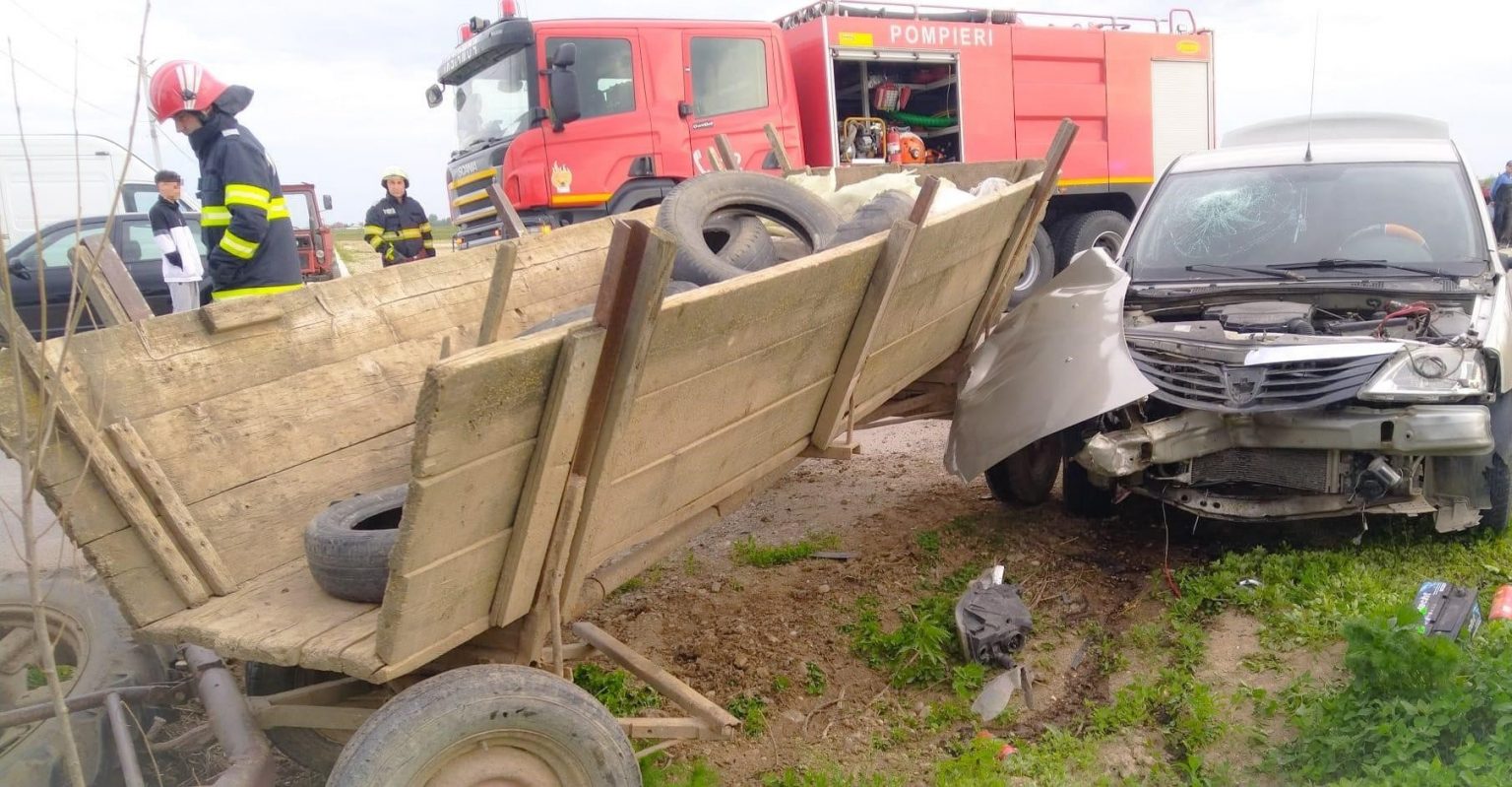 Home»Social»La LUNGULEȚU, un tractor care tracta o căruță s-a răsturnat, în urma impactului cu un alt autoturism