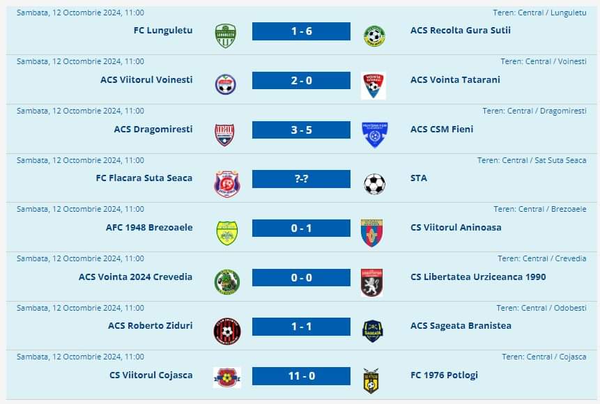 Etapa viitoare, sâmbătă, 19 octombrie, ora 11.00: Potlogi – Lungulețu, Braniștea – Cojasca, Urziceanca – Ziduri, Aninoasa – Crevedia, Fieni – Șuța Seacă, Tătărani – Dragomirești, Gura Șuții – Voinești. Brezoaele stă.