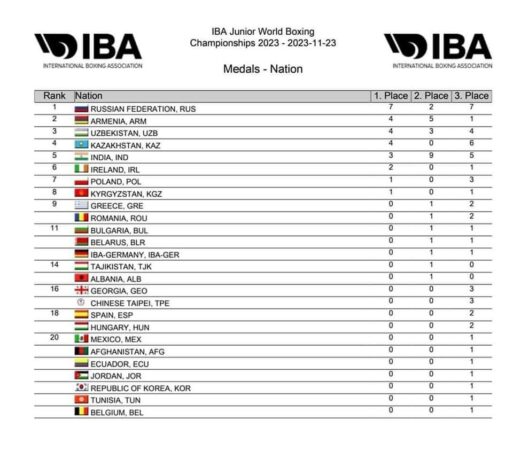 Locul 9 în clasamentul pe națiuni pentru România, la egalitate cu Grecia, la Campionatul Mondial de Box pentru Juniori de la Erevan, Armenia! Cele trei medalii obținute de fetele noastre – un argint, prin Amalia Țugui, și