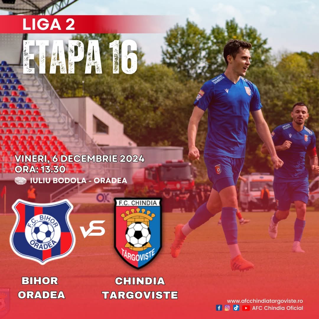 Astăzi, 6 decembrie 2024, FC Bihor Oradea va juca un meci crucial pe teren propriu, în cadrul Etapei 16 a Ligii 2, împotriva celor de la AFC Chindia Târgoviște, ora: 13:30, stadionul Iuliu Bodola, Oradea.