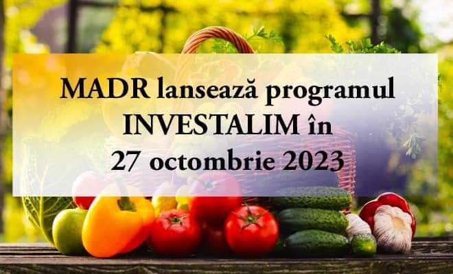 Ministerul Agriculturii lansează programul INVESTALIM din 27 octombrie 2023, s-a intrat în linie dreaptă cu acest program extrem de important pentru producţia românească și iată că în data de 27 octombrie prima sesiune de depunere a proiectelor.