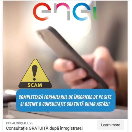Atacatorii se folosesc de identitatea vizuală Enel România pentru promovarea schemei de fraudare, alături de fotografii cu Președintele, respectiv Premierul României. Pe site-ul de phishing unde utilizatorul este redirecționat, lângă imaginea ENEL apare deopotrivă și branding-ul ROMGAZ, Hidroelectrica, Banca Transilvania și Digi24.