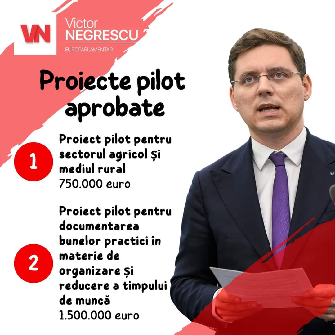 Parlamentul European a aprobat două noi proiecte pilot pe care eurodeputatul Victor Negrescu le-a inițiat și care au primit avizul pozitiv al Comisiei Europene: un proiect pentru sprijinirea sectorului agricol și a mediului rural.