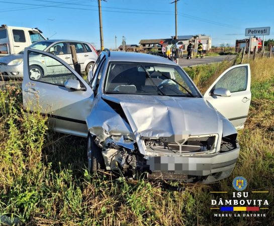Pe DJ 611 Petrești, a avut loc o coliziune între două autoturisme conduse de o femeie de 25 de ani și un bărbat de 47 de ani, din Dragomirești.