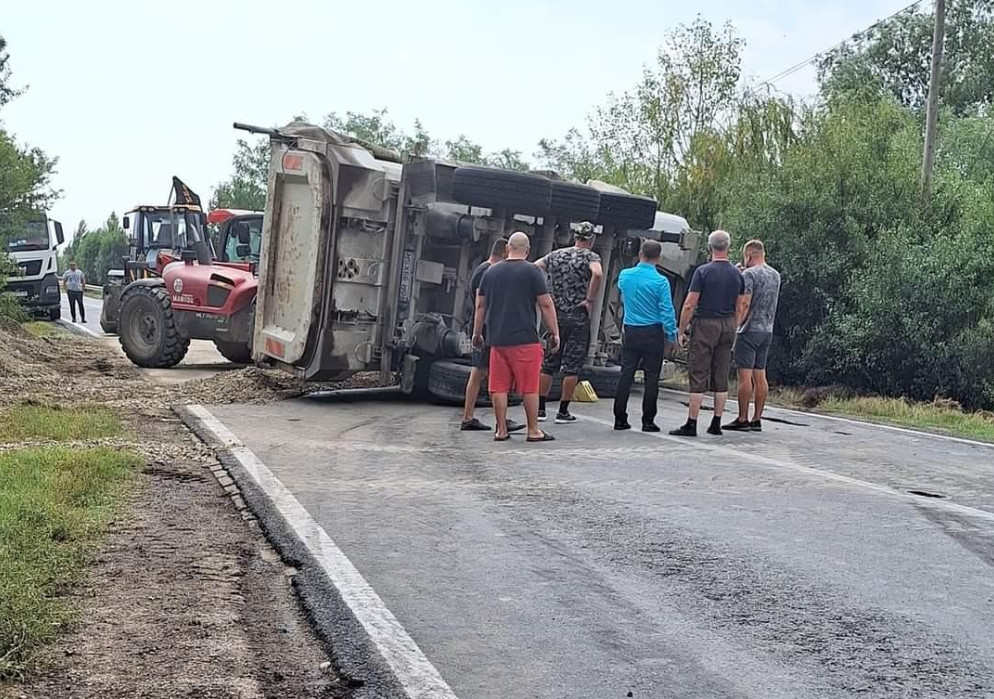 Pe DN 1A, în satul Cătunu, comuna dâmboviţeană Cornești, un autocamion încărcat cu pietriș s-a răsturnat pe carosabil, traficul a fost blocat,nu au rezultat victime.