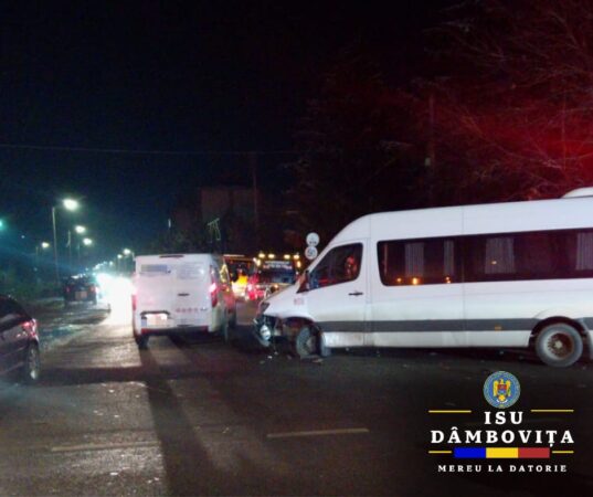 Vineri seară, pe DN 1A Crevedia s-a produs o coliziune între două autoturisme și un microbuz de transport persoane.