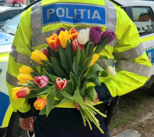 Polițiștii din toată țara au avut o misiune importantă: să ofere flori și să aducă zâmbete pe fețele tuturor femeilor pe care le-au întâlnit.