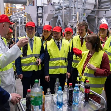 Premieră în România – prima unitate de decontaminare PET, ministrul Mircea Fechet, alături de prim-ministrul Marcel Ciolacu și de E.S. ambasadorul SUA în România, Kathleen Kavalec, a participat la evenimentul de inaugurare a unei noi linii de producție a fabricii Coca-Cola.