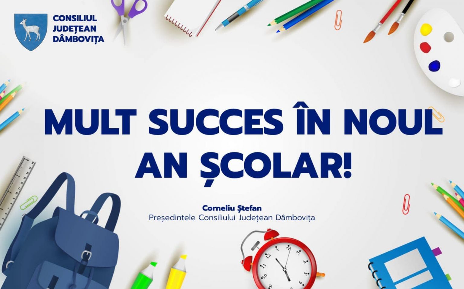 Președintele CJ Dâmbovița, Corneliu Ștefan a transmis un mesaj cu ocazia deschiderii noului an școlar, astăzi, 5 septembrie 2022: Tuturor, mult succes în noul an școlar!
