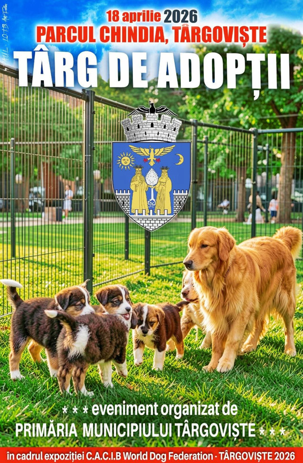 Municipiul Târgoviște găzduiește sâmbătă, 18 aprilie, începând cu ora 10:00, un eveniment de amploare dedicat iubitorilor de animale, organizat în Parcul Chindia. Manifestarea îmbină o expoziție chinologică internațională cu un târg de adopții pentru câinii din adăpostul public al orașului.