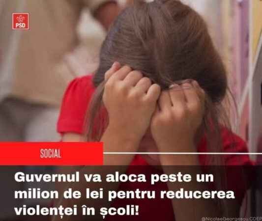 PSD a anunțat că Guvernul va aloca suma de 1.407.473 de lei pentru implementarea programelor destinate reducerii violenței în mediul școlar în cel puțin 250 de instituții de învățământ.