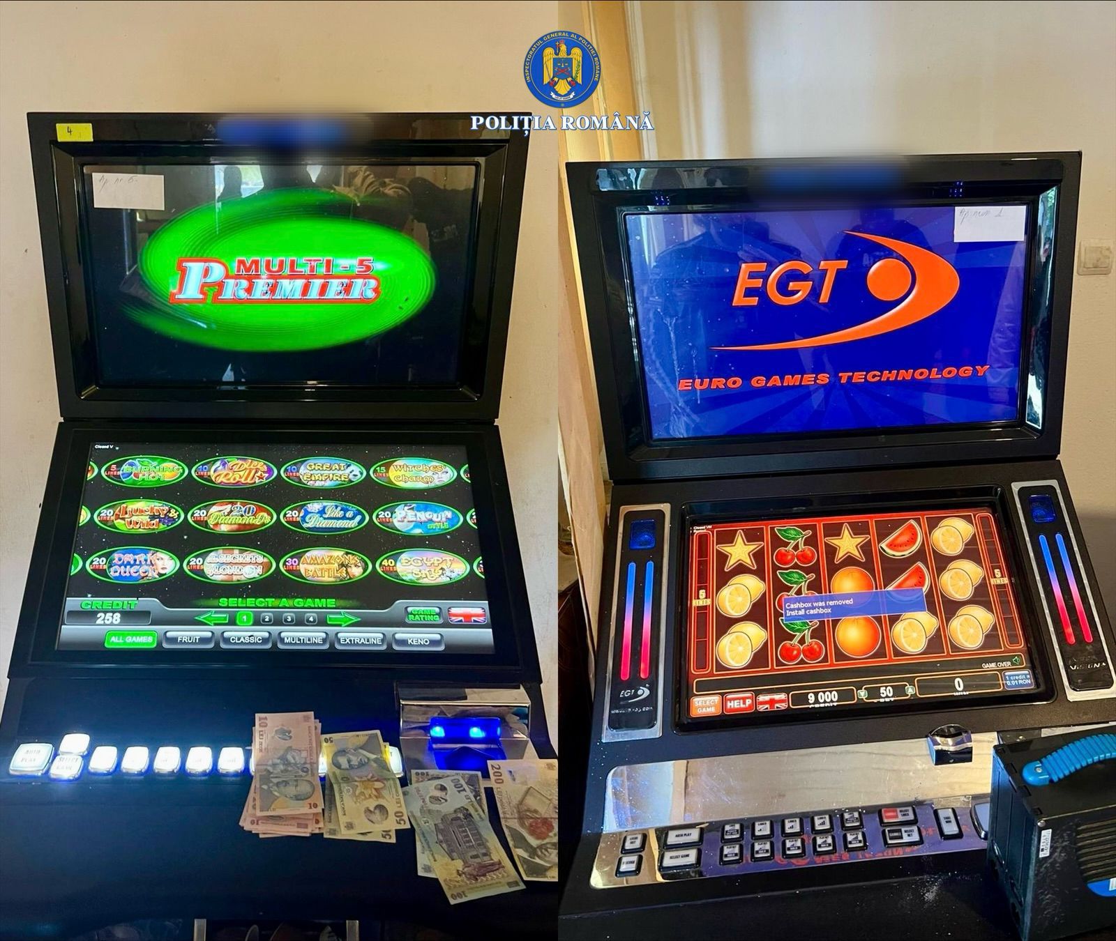 Polițiștii au întocmit și un dosar penal pentru săvârșirea infracțiunii de desfășurare fără licență sau autorizație a activităților din domeniul jocurilor de noroc, fiind indisponibilizate 7 aparate de tip slot machine și suma de 5.830 de lei, identificate la sediul unei societăți comerciale.