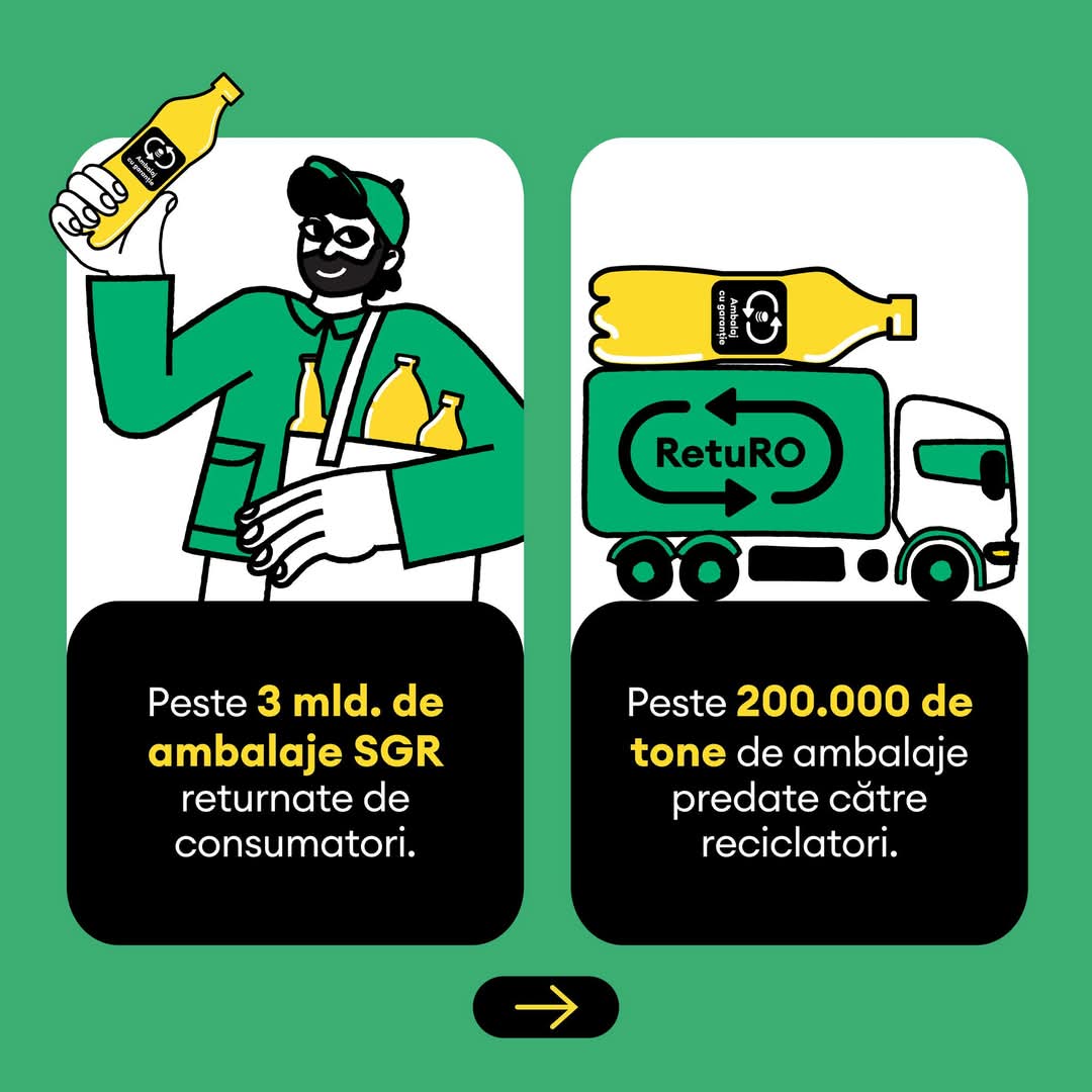 Peste 3 miliarde de ambalaje returnate, aproape atingând ținta anuală de 3,2 miliarde.